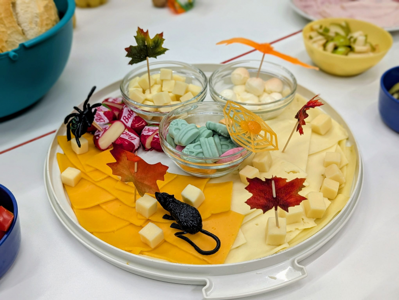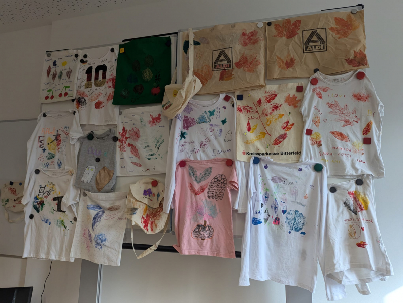 Die Woche vor den diesjährigen Oktoberferien stand bei uns ganz im Zeichen des Herbstes. Mit großem Engagement haben sich die Kinder und das Team dem vielfältigen Thema gewidmet, wobei gekocht, gesungen und gebastelt wurde. Besonders kreativ zeigten sich die Schülerinnen und Schüler u.a. beim Gestalten von Textilien: Mit der Technik des Blätterdrucks verzierten die Kinder T-Shirts und Stoffbeutel und schufen so wunderschöne, einzigartige Herbstwerke. Zum Abschluss der herbstlichen Projektwoche gab es am letzten Tag vor den Ferien in einigen Klassen ein gemütliches, herbstliches Frühstück. Hier konnten die Kinder gemeinsam die von zu Hause mitgebrachten Köstlichkeiten verspeisen und die Woche genussvoll ausklingen lassen. Ein herzlicher Dank gilt an dieser Stelle allen Eltern, die uns in dieser bunten Projektwoche tatkräftig unterstützt haben.